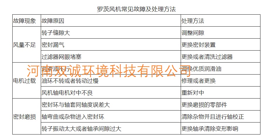3、羅茨風(fēng)機(jī)常見故障及處理方法